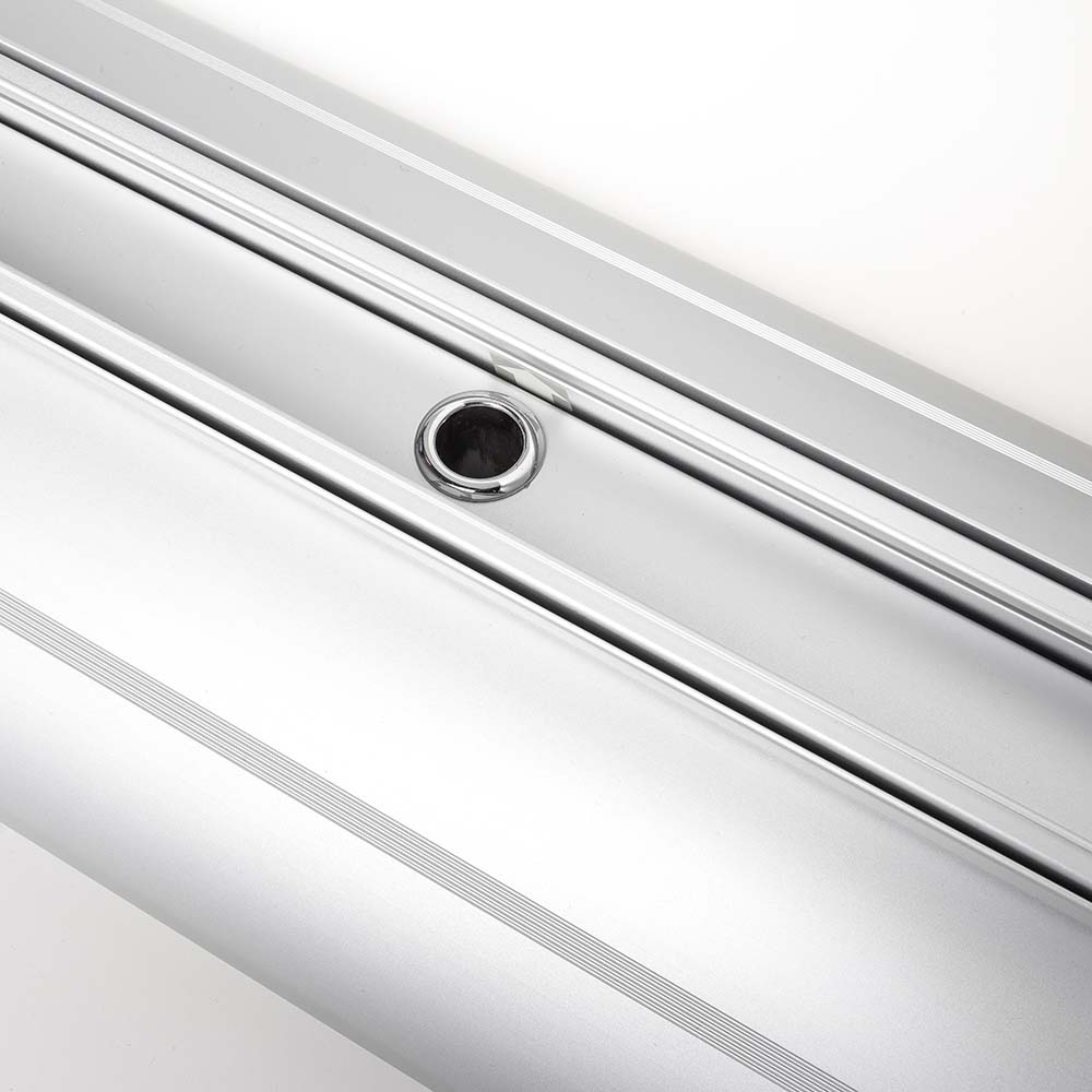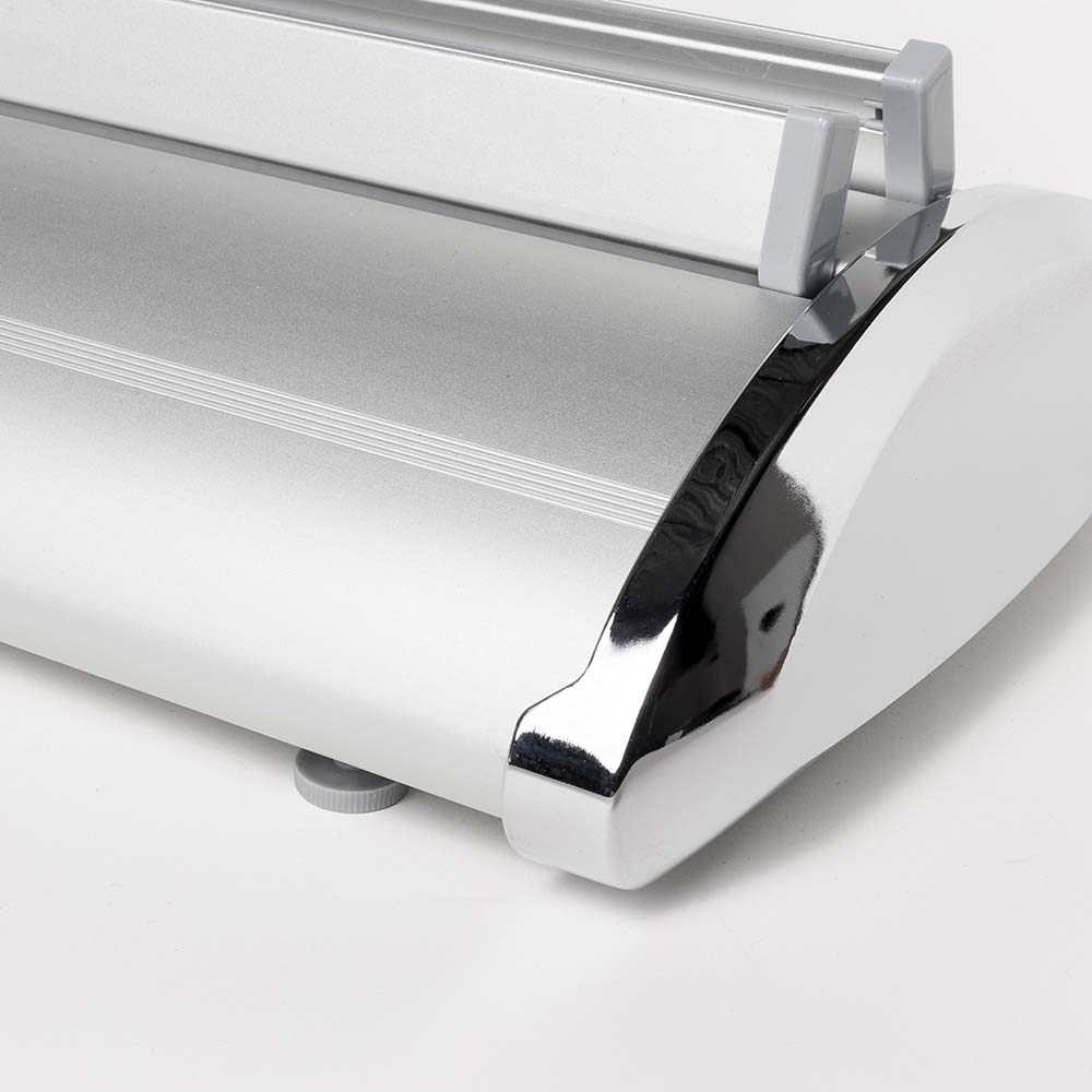 Bannerdisplay RollUp - Design 100 Double - Sichtformat: 1.000 x 2.000 mm - Verchromte Seiten und Standfuß, Teleskopstange, - gepolsterte Transporttasche mit Tragegurt, - 2 Digitaldrucke 1000 x 2160 mm (Greyback PVC-frei B1) - Druck gem. gel. Druckdaten - einzeln verpackt