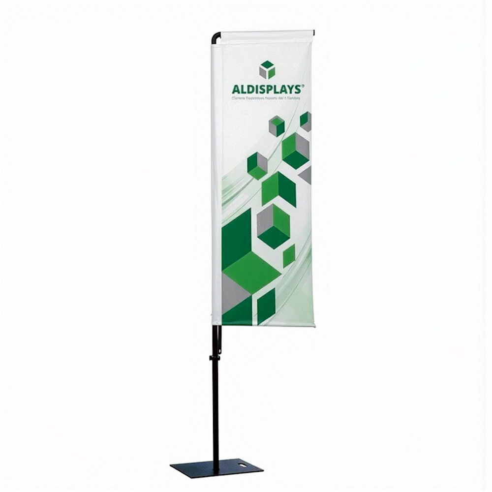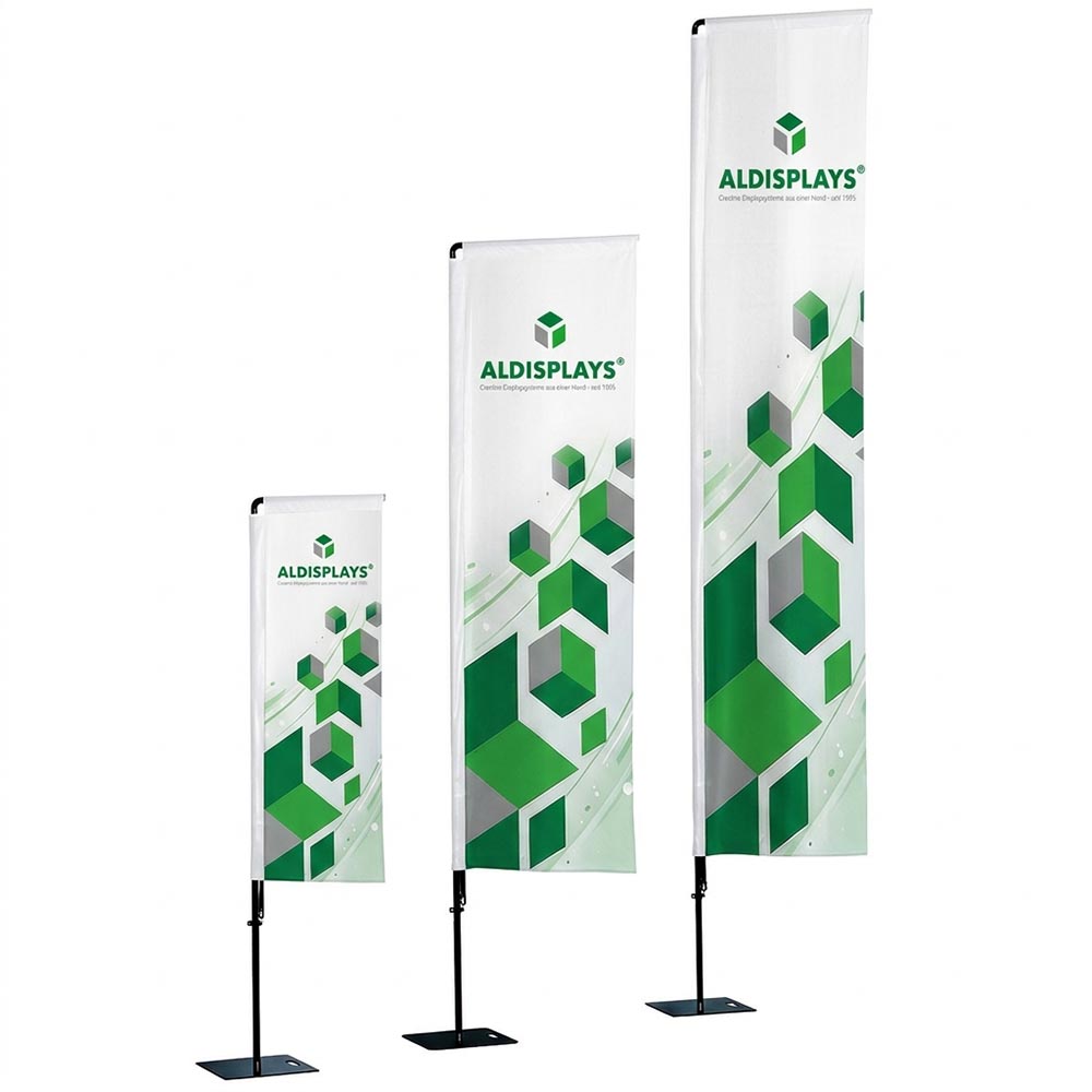 BeachFlag "Square" Größe M einseitig - Bst. aus Alu-Mast-System und Transportbeutel - 4/0c Digitaldruck Fahnenstoff (B1) - Aufbau-Format: 600 (B) x 2.290 (H) mm - Druck-Format: 720 (B) x 1.670 (H) mm - Druck gemäß gelieferten Druckdaten