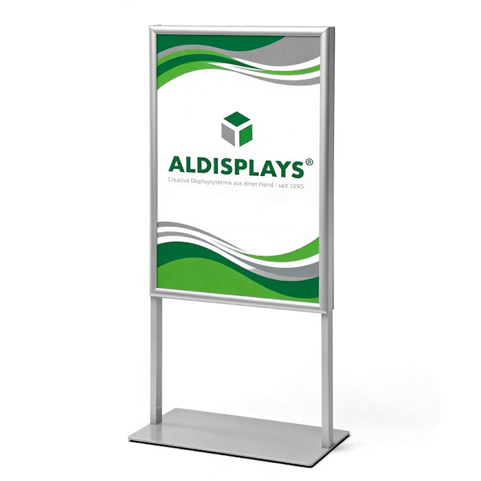 Im ALDISPLAYS-Sortiment gibt es doppelseitige Infoständer in den gängigen DIN-Formaten wie DIN A1, A2, A3 und A4, mit eleganter silber-eloxierter Aluminium-Konstruktion und wahlweise Acrylablagen für Prospekte. Modelle wie der ellipsenförmige Kombi-Aufsteller oder der Infoständer MONO bieten flexible Möglichkeiten für Plakatpräsentation und Prospektentnahme. Für besondere Anforderungen sind auch Sondergrößen und kundenindividuelle Lösungen lieferbar.