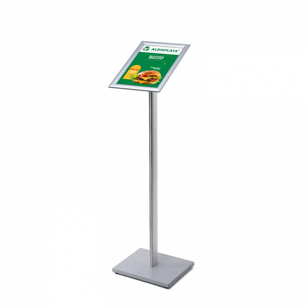 Erhöhen Sie die Professionalität Ihrer Kundenansprache mit diesem Plakatständer DIN A4: Schneller Posterwechsel durch den Gehrungsschnapprahmen, optimale Lesbarkeit dank abgewinkeltem Design und langlebige Materialien für Dauerbetrieb. Kontaktieren Sie unser Team für individuelle Konfigurationen oder Großbestellungen!