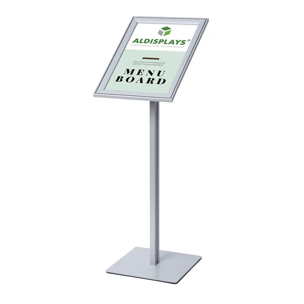 Bei ALDISPLAYS bieten wir Ihnen als B2B-Kunde den Menüständer Premium – die perfekte Lösung, um Ihre Gastronomie-, Einzelhandels- oder Service-Angebote mit elegantem Flair zu präsentieren. Unser hochwertiger Posterständer kombiniert zeitloses Design mit robuster Funktionalität und sorgt für maximale Sichtbarkeit Ihrer Speisekarten, Sonderaktionen oder wichtigen Infos. Mit flexiblen Montageoptionen und langlebigen Materialien ist dieser Menühalter ideal für professionelle Einsätze in Restaurants, Hotels, Geschäften oder Messen.