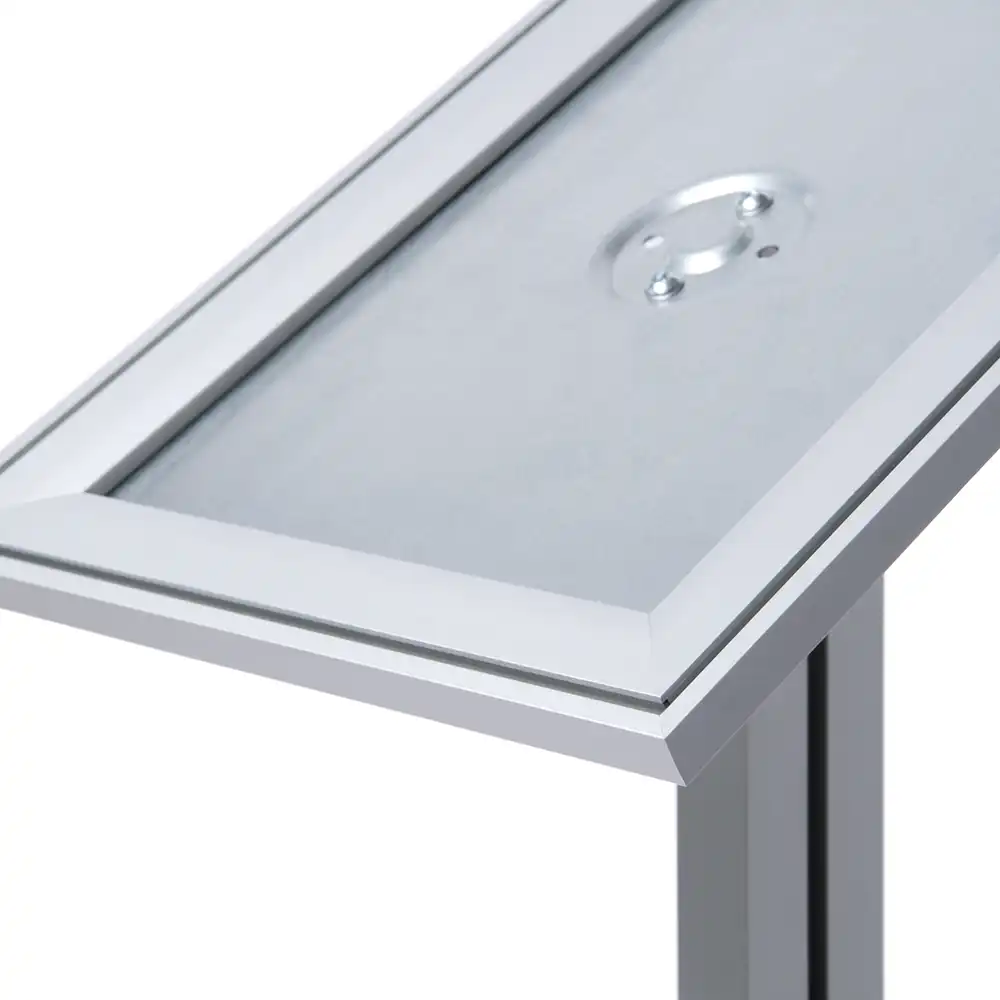 Infoständer mit Klapprahmen Premium - im Format DIN A3 (hoch oder quer) Klapprahmen im 37er Profil Gehrung - Farbe: silber-eloxiert (EV1) - Einlegeformat 420x297 mm - Stabile Aluminium-Konstruktion, Fuß Metall