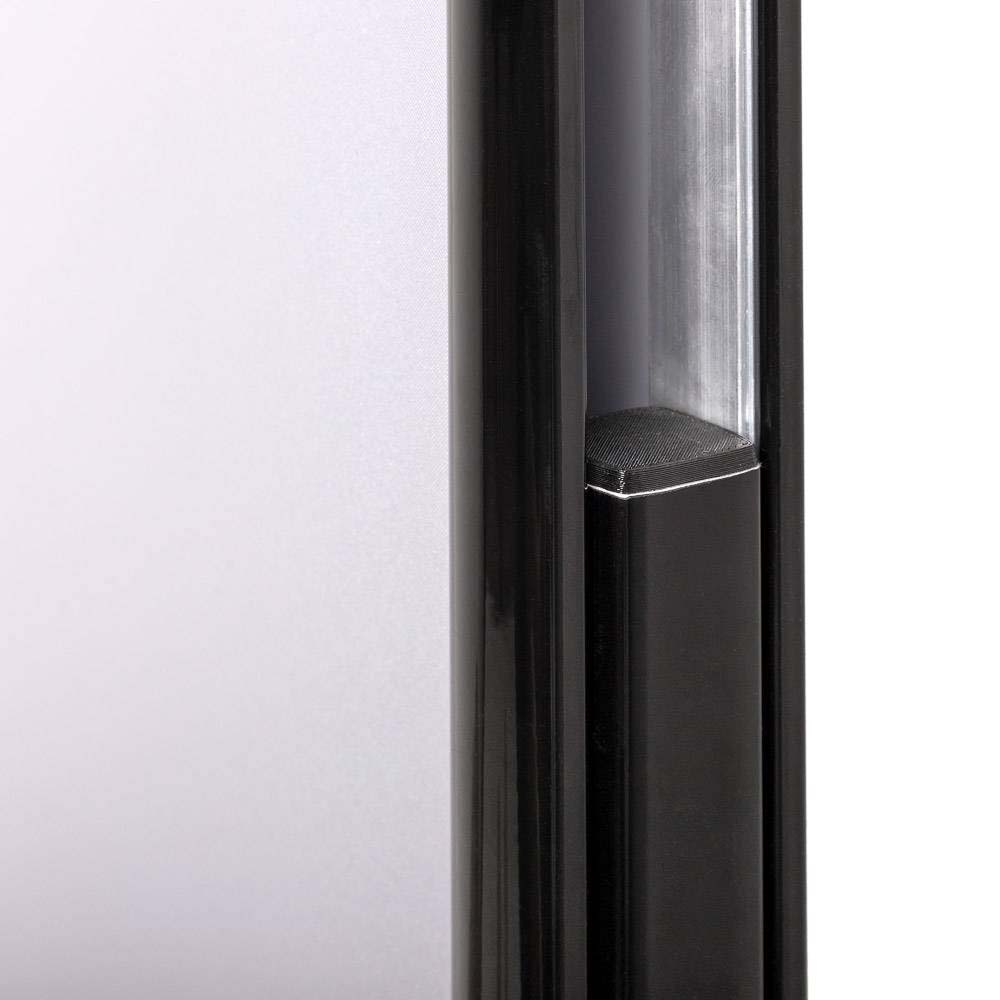 Beide Infoständer verfügen über einen 25 mm breiten Klapprahmen aus hochwertigem Aluminium, der einen schnellen und werkzeuglosen Motivwechsel erlaubt. Die Handhabung ist einfach und zeitsparend, speziell wenn Sie häufig wechselnde Aktionen oder saisonale Werbung präsentieren möchten. Die Rahmen halten Ihre Plakate sicher und ermöglichen durch die Antireflex-Posterschutzfolie eine blendfreie und kratzfeste Darstellung.
