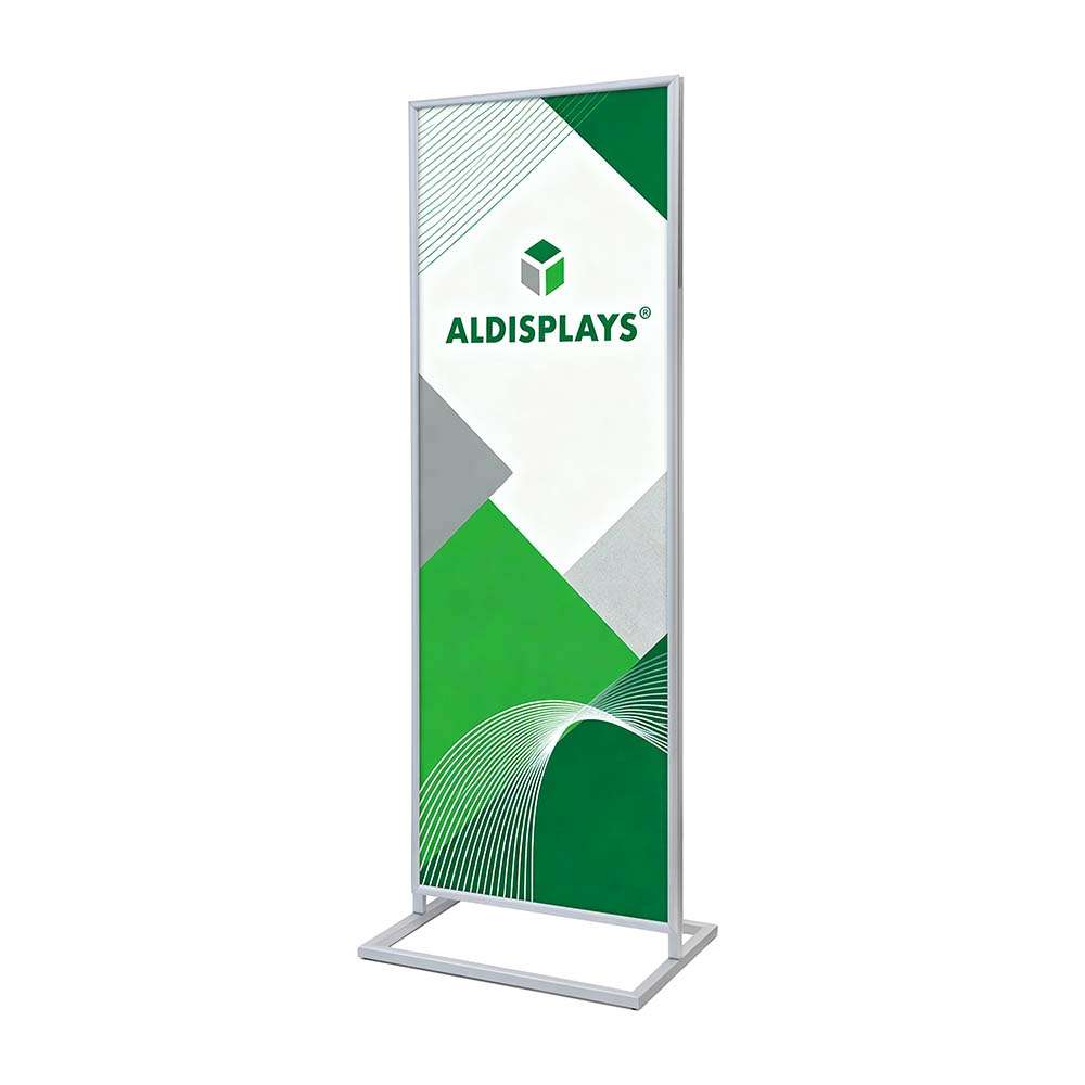 Bei Aktionen, im Abverkauf oder auf Messen. Firmen können so mit wenig Geld ihre Werbung verstärken und ihre Marke bekannter machen. Dieser Ständer vereint alles, was man von modernen Infoständern, Plakatständern und Werbeaufstellern erwartet: Er steht stabil, ist vielseitig und einfach zu bedienen. Verlass dich bei der Auswahl auf ALDISPLAYS – dein Partner für Bodenaufsteller, Posterständer und Werbedisplays mit guter Präsentation und fairen Preisen.