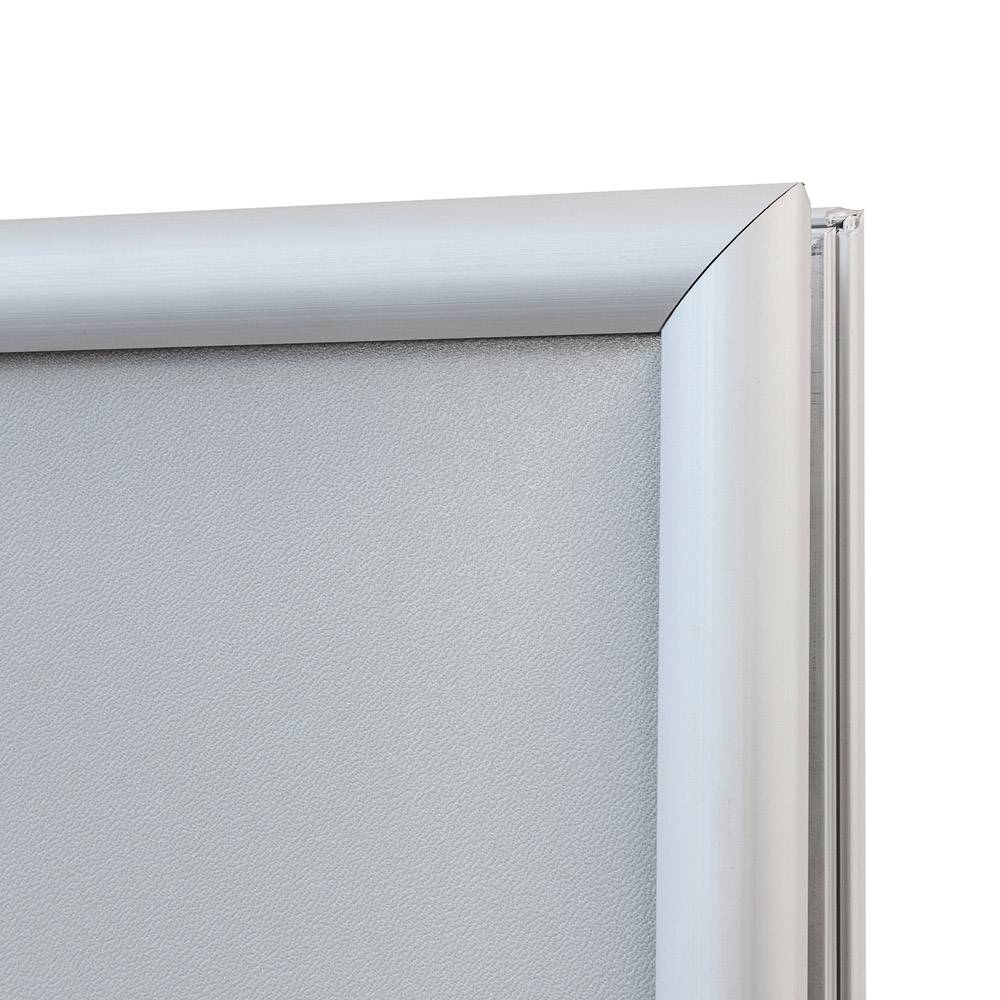 Beide Infoständer verfügen über einen 25 mm breiten Klapprahmen aus hochwertigem Aluminium, der einen schnellen und werkzeuglosen Motivwechsel erlaubt. Die Handhabung ist einfach und zeitsparend, speziell wenn Sie häufig wechselnde Aktionen oder saisonale Werbung präsentieren möchten. Die Rahmen halten Ihre Plakate sicher und ermöglichen durch die Antireflex-Posterschutzfolie eine blendfreie und kratzfeste Darstellung.