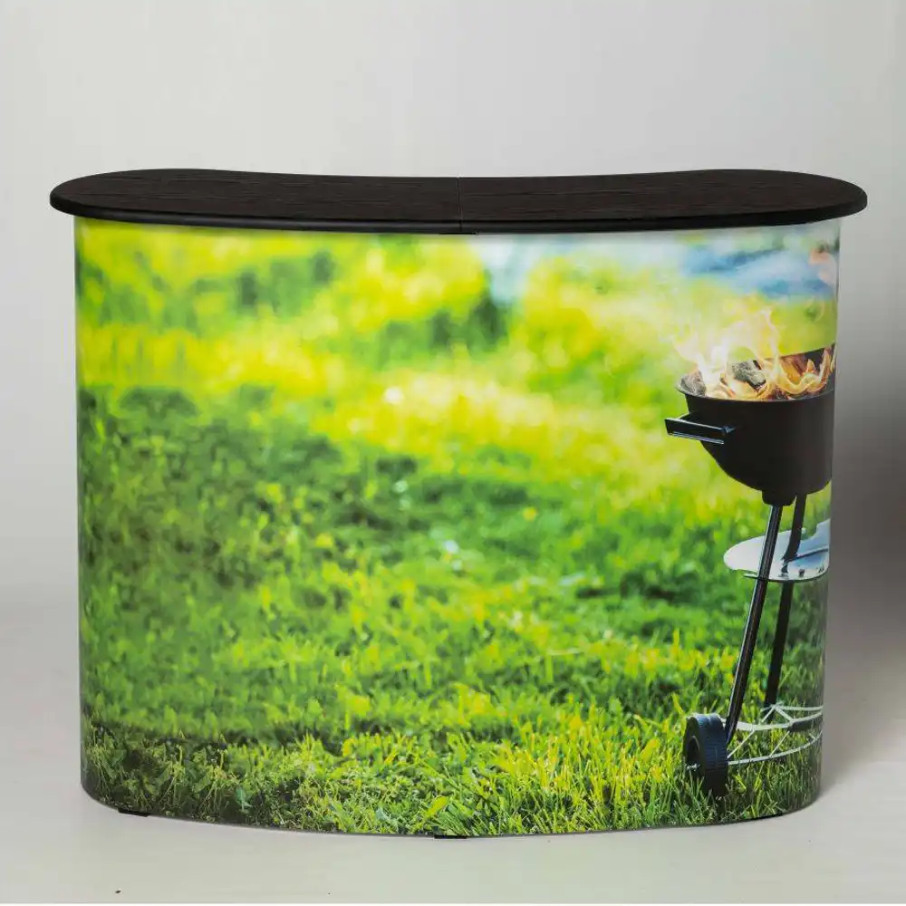 Optisch fügt sich die Promotiontheke PopUp Magnetic nahtlos in Ihr Corporate Design ein. Wählen Sie zwischen einer Tischplatte in moderner, heller Eichenoptik oder in klassischem Schwarz, um Ihren Markenauftritt perfekt zu ergänzen. In Kombination mit einem individuell gestalteten, PVC-freien Solid Flex Print entsteht eine Promotiontheke, die sowohl nachhaltig als auch aufmerksamkeitsstark ist. So nutzen Sie Ihre Promotiontheke nicht nur als Theke, sondern als zentrales Branding-Element am Messestand oder im POS-Bereich.