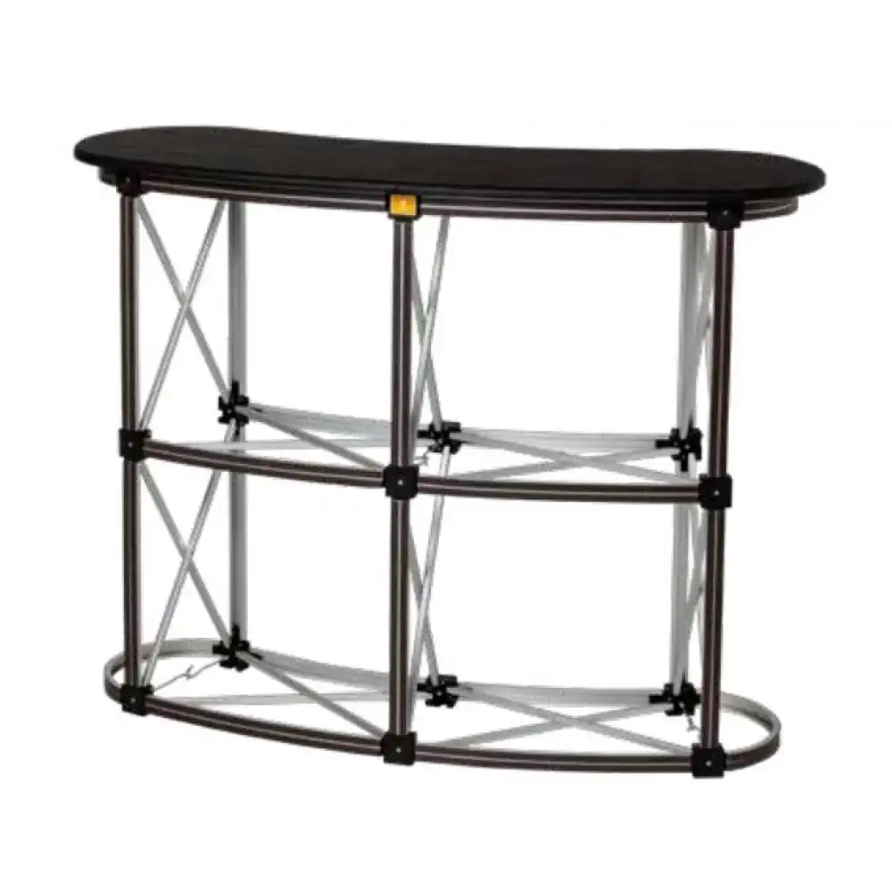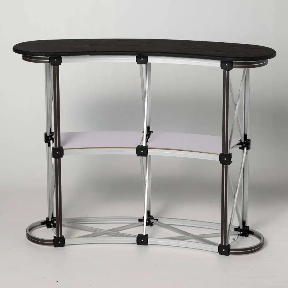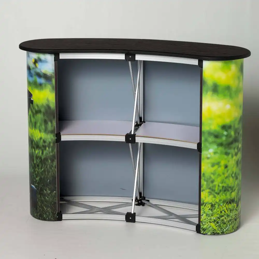 • Stabiles Aluminium-Thekengestell mit Magnetleisten, ideal für wiederkehrende Promotionaktionen und langlebigen Einsatz im Messe- und Veranstaltungsbereich.